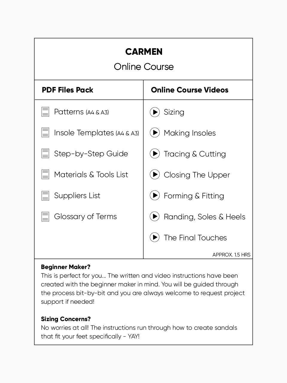 This online course bundle will guide you through all of the steps required to create your very own pair of Carmen Sandals!